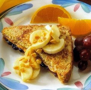 6.Cut the French toast sammies into 4 sticks apiece and serve with warm maple syrup.