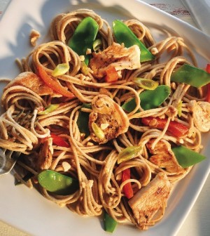 Japanese-style soba noodles get the royal treatment in a creamy coconut, tamari and peanut sauce for a mouthwatering stir-fry that combines all of your favorite Asian flavors.
