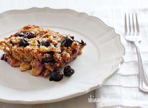 Bake the oatmeal for about 30 minutes, or until the top is golden brown and the oatmeal has set. Serve warm from the oven.