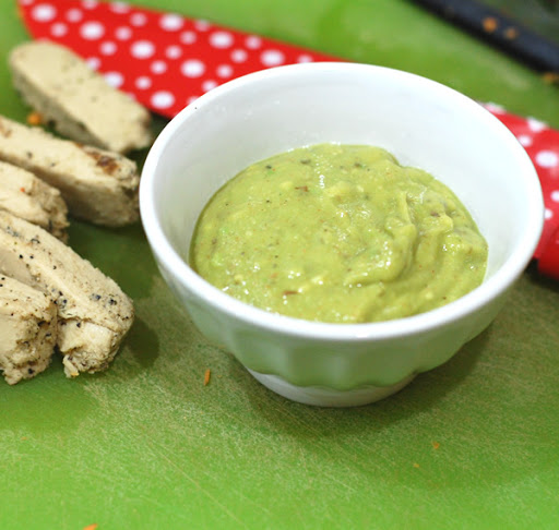 Scrape the avocado flesh into a small bowl and mash well. Add in all the other ingredients and mix until thoroughly combined.