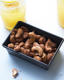 Spread cashew mixture in a single layer onto a parchment-lined rimmed baking sheet. Bake until golden, 20 minutes. Let cool completely.