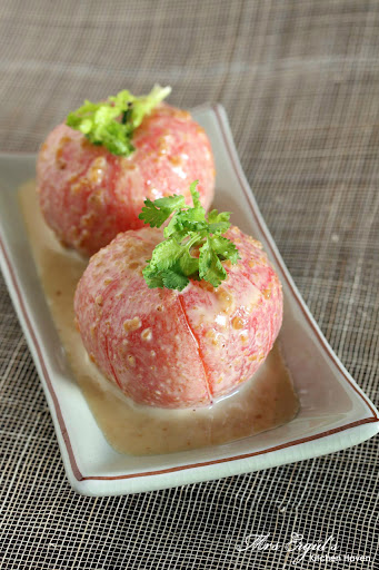- Trim bottom of tomatoes if necessary for it to stand.