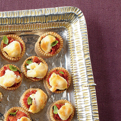 Meanwhile, drain tomatoes well, pressing between paper towels. Combine tomatoes and chopped basil in a small bowl; season with desired salt/pepper. Stir together mayonnaise and next 3 ingredients in a medium bowl. Divide tomato mixture among pastry shells, and top wiht mayonnaise mixture.