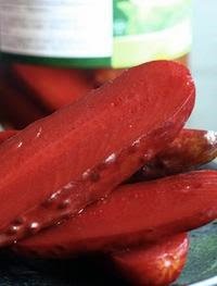 What fun! Pickles are marinaded in Kool Aid creating unique colors with a sweet and tangy flavor!