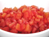 In large saucepan bring water to a boil; add tomatoes. Cook 20 to 30 seconds. Remove tomatoes; plunge into ice water. Peel, seed and finely chop tomatoes. In large frying pan heat olive Oil until hot over medium high heat. Add onion and garlic; cook until onion is tender. Add salt, pepper, bay leaves and chopped tomatoes. Reduce heat io medium: simmer 3 to 5 minutes to blend flavors. Remove bay leaves. 4 cups.