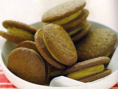 11.Spread a rounded teaspoonful of Creamy Molasses Filling on the flat side of cookie; place another on top, gently press