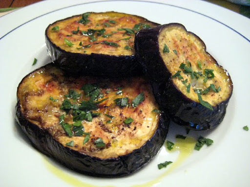- 3 medium eggplants, to yield about 3 pounds, stem removed, sliced into 1 inch slices