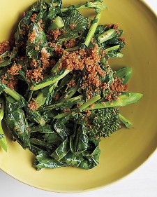 Transfer to a platter, season aggressively with pepper, and conservatively with salt. Serve with the toasted breadcrumbs.