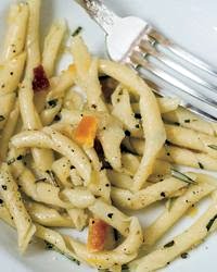 Cavatappi with Pancetta Rosemary and Orange: This is a shi-shi pasta dish, but still very simple as is common with the region. The strong flavors meld surprisingly well.