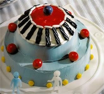 5. Cut licorice twists into 1-1/2-inch pieces; arrange on side of bowl cake as shown in photo. Decorate UFO with gumballs and assorted candies as desired.