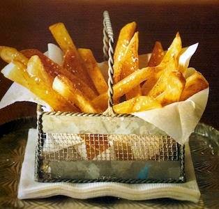 1. Preheat oven to 450 degrees F (230 degrees C). Line a baking sheet with foil, and coat well with vegetable cooking spray. Scrub potatoes well and cut into 1/2 inch thick fries.
