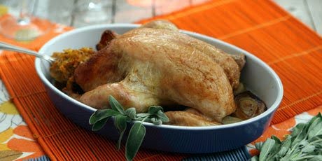 2. Cover pan and roast for 20 minutes. Remove cover, baste chicken with juices from the bottom of the pan and continue roasting until an internal temperature of 175?F (80?C) is reached, basting 3 or 4 times during roasting. Remove pan from oven and let chicken stand for 10 minutes before removing and carving.