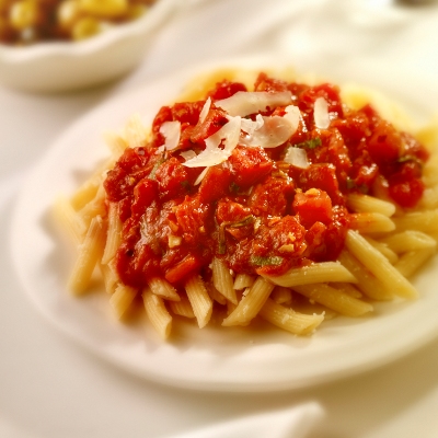 Cook pasta in large saucepan according to package directions while sauce is cooking. Drain, reserving 1/2 cup of the cooking water. Return pasta and the reserved cooking water to same saucepan; stir in cheese. Set aside.
