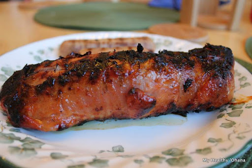Mix 1/4 cup peach preserves, 1 tablespoon whole-grain mustard and 1/2 teaspoon hot sauce. Season 1 pork tenderloin with salt and pepper and coat with the peach mixture; seal in a foil packet. Grill over high heat, turning, 18 minutes.