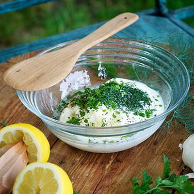 Freshly-made ranch dressing seasoned with fresh-chopped garden dill, parsley and chives tastes great on salads, served as a dipping sauce with fresh vegetables, crispy chicken tenders and Buffalo wings or as a condiment for sandwiches.