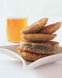 When firm, tart green tomatoes are coated in bread crumbs and Parmesan cheese then pan-fried, they become amazingly crispy on the outside, and warm and juicy on the inside. If green tomatoes are difficult to find, fresh tomatillos make an excellent substitute.