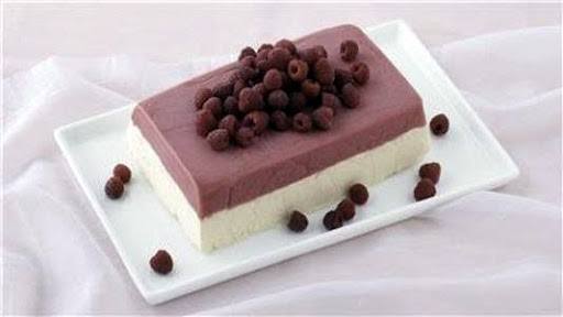 3. FREEZE 3 hours or until firm. Unmold onto plate; remove foil. Let stand 10 min. to soften slightly before slicing to serve. Top with berries.