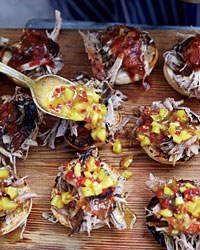 In a saucepan, boil the sorghum and vinegar; season with salt and pepper. Simmer until slightly reduced, 10 minutes. Pour the glaze over the pork and roast for 15 minutes, until glazed. Let cool, then shred the pork.