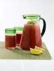 3. Pour watermelon lemonade into glasses. Spoon dollop of frozen kiwifruit on top. Serve immediately.