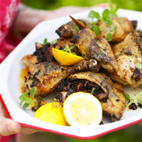 4. Serve with fresh lemon and garnish with oregano. Makes 4 to 6 servings.