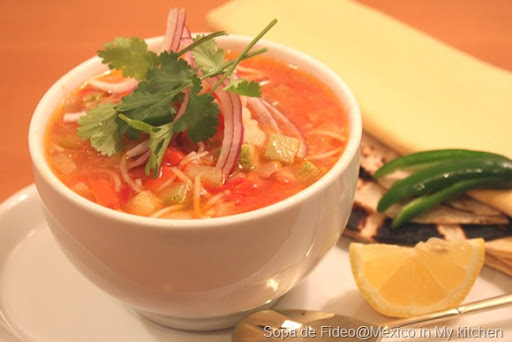 Sopa de Fideo con Pollo Receta/Mexican Vermicelli Soup with Chicken and Vegetables