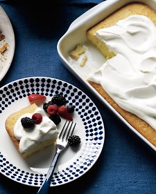A riff on tres leches, this coconutj-spiked sponge cake is soaked in condnesed milk, heavy cream, and - in place of the usual evaporated milk - coconut milk. Serve it with berries and whipped cream.