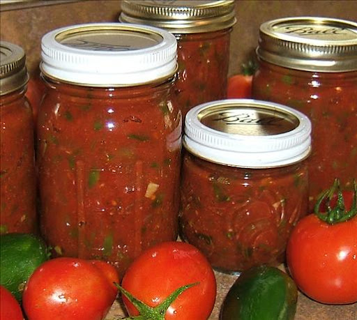 I got this years ago from the lady in our church who canned it. I've never made it but I've eaten lots of it! It's the best salsa I have ever had. Especially good with lime tortilla chips or on taco salad (Easier-Than-Making-Tacos Taco Salad). If you are new to canning look up" canning 101" on this web site and it gives step by step instructions.