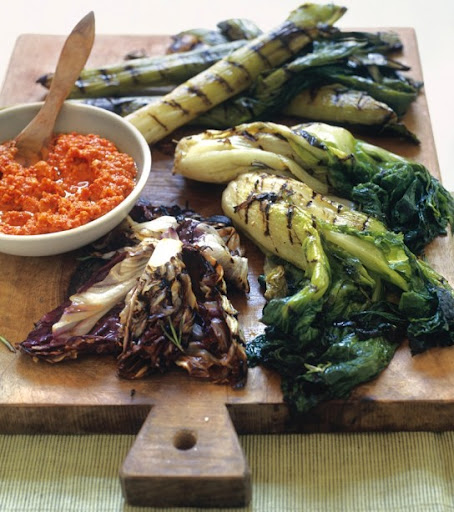 In a food processor, combine tomato, garlic, almonds, piquillo peppers, vinegar and bread and process until a rough paste forms, about 1 minute. Using a spatula, scrape down sides of bowl, then, with the motor running, gradually add olive oil until well combined. Season to taste with salt and pepper. Transfer sauce to a bowl and serve with grilled vegetables. Serves 4.
