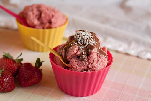 Pour into 2 freezer safe bowls and place in the freezer for at total of 1.5-2 hours, removing every 30 minutes to whisk so that it doesn't set into an ice cube.