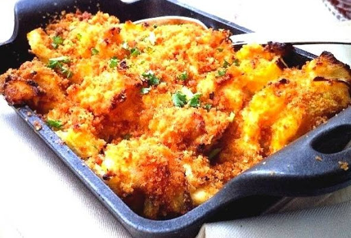 Place in the prepared casserole dish and sprinkle the cracker crumbs evenly over the top. Bake for 20 minutes or until the top is golden and bubbly.