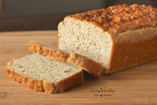 In a saucepan, melt butter and let cool 5 minutes. Whisk melted butter together with eggs, vinegar and yogurt, using a rubber spatula, gently mix wet and dry ingredients to form a batter being careful not to over mix or the batter will get oily and dense. Pour into an 8½x4½” loaf pan greased or lined with parchment paper. Sprinkle top with whole flaxseeds.