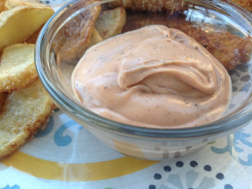 The sauce is a clone of the Raising Cane's restaurant recipe, and is used for dipping chicken fingers. It's also similar to a few other chicken finger restaurants (like Guthrie's). This makes enough for 2-3 people to dip chicken, texas toast, and fries in.