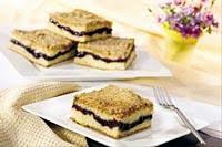 2. Combine butter or margarine and 1 cup sugar in a large mixing bowl. Using an electric mixer, beat until mixture is light and fluffy. Add eggs, one at a time, beating well after each addition. Mix in vanilla and sour cream. Add flour mixture and stir until just combined. Spread half the batter in the bottom of a greased 7 x 11-inch baking pan. Top with Blueberry Fruit Filling and carefully spread remaining batter over filling.