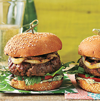 Burgers with Blue Cheese Mayo and Sherry Vidalia Onions