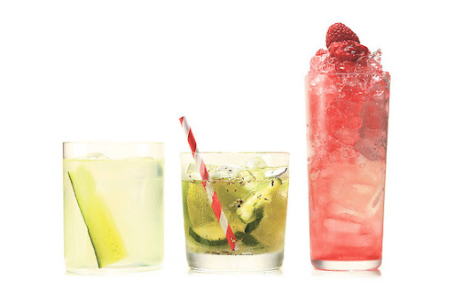 • 3-4 slices English cucumber (1/4-inch thick), snapped in half with your fingers