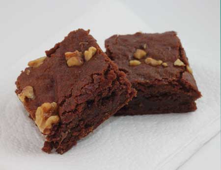Today’s recipe is from Steven, who got it from a trusted source (his godmother) but couldn’t make it work. The brownies tasted good, but were goopy and seemed underdone even though they appeared fully baked. My mission was to troubleshoot. Not wanting to waste precious chocolate and Kahlua on goopy brownies, the first thing I did was search the Internet to see if the recipe existed elsewhere. Naturally, it did. I found it on Cooks.com and Recipesource and the versions were almost identical, except for pan size and flour discrepancies. Those sources called for 1 1/4 cups, while this recipe called for 1 ½ sifted cups. The varying amounts of flour and the fact that one of the recipes called for sifted were signals Steven’s problems probably came from not using enough flour. If we all baked with scales, this wouldn’t be an issue, but 1 ½ cups sifted flour can be anywhere 6 oz to 7 or even 8 depending on how heavy a hand is used to scoop and how well the flour is sifted and (possibly) humidity.