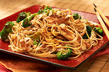 Savory chicken pasta with tantalizing aromas and enticing Asian flavors is ready to be served in just 25 minutes. Speedy, right?