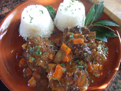 Cubrimos con la salsa y servimos como acompañamiento, si queremos, con unas patatas fritas el delicioso rabo de toro.