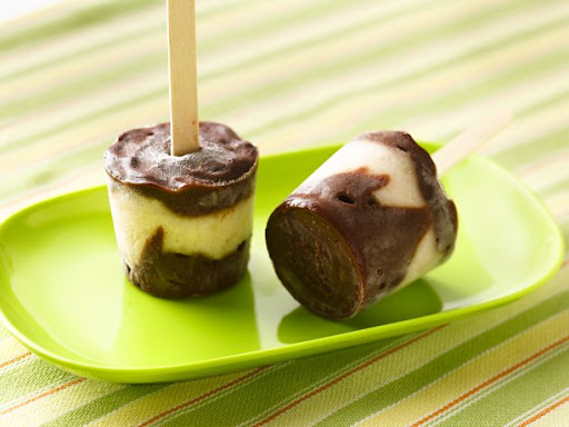 Pop up with fun layered chocolate and banana frozen treats made with yogurt.