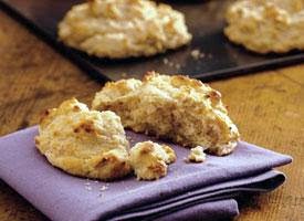 2. Stir all ingredients until soft dough forms. Drop dough into 6 mounds onto ungreased cookie sheet.