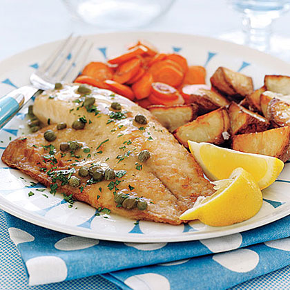 2. Pour wine and lemon juice into skillet and bring to a boil. Remove from heat and stir in capers, parsley and remaining 1 Tbsp. butter; keep stirring until butter melts. Place each fillet on a plate, pour sauce over fish and serve immediately.