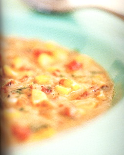 Cut kernels from the cobs, and dice bell pepper. Sauté corn and bell pepper in a large pan with 2 tablespoons (30 mL) of butter for 10 minutes, or until corn begins to brown. Reserve.