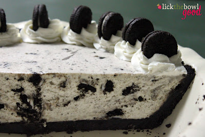 Crush 26 of the Oreo cookies into crumbs. Mix with butter until well combined. Press mixture firmly into the bottom and up the side of a 9-inch pie plate. Refrigerate while preparing the filling.