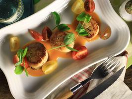 Pan Seared Scallops with a Tomato and White Chocolate Beurre Blanc 1 Picture