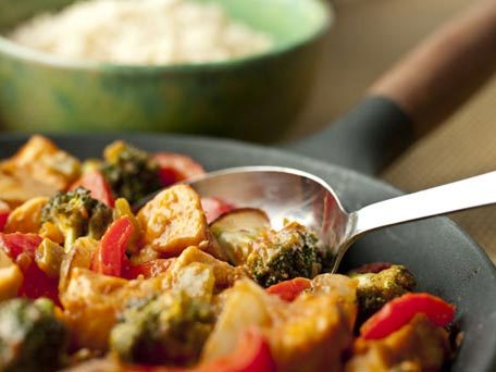 Add the remaining oil to the skillet. Add the broccoli, pepper and onion and cook until they're tender-crisp, stirring often.