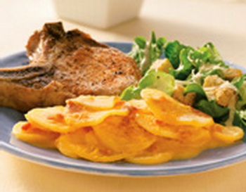 Bake potatoes and pork chops about 30 min or until pork is thoroughly cooked (160°).