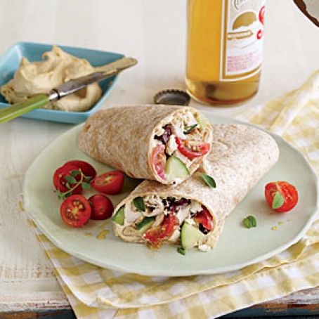 These chicken wraps deliver on flavor with the mix of kalamata olives and feta cheese, with a homemade lemon oregano dressing and a spread of hummus.