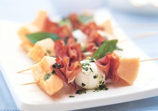 Brochettes of Melon, Prosciutto, and Fresh Mozzarella
