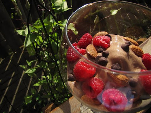 I decided to add some vegan chocolate chips, raw almonds and raspberries to mine! So good! Such a great thing to wake up to.