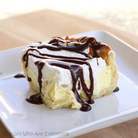 Eclair Crust: In a medium saucepan, melt butter in water and bring to a boil. Remove from heat. Stir in flour. Mix in one egg at a time, mixing completely before adding another egg. Spread mixture into pan, covering the bottom and sides evenly. *If the sides of your pan are too greased you won't be able to get the mixture to stay up the sides so make sure to just lightly grease.